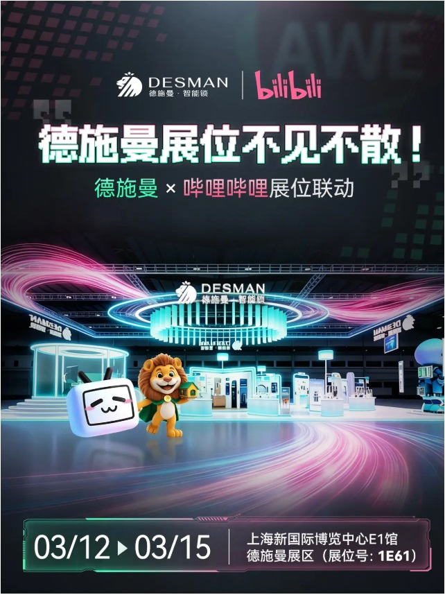 作为全球智能锁领域的引领者,德施曼此次在AWE展会将首次完整呈现行业最高AI家居守护生态,以AI交互、人文关怀与安防升级为核心,打造集技术体验、场景展示、趣味互动为一体的主题展区,全方位展现德施曼在家庭智能安防领域的前瞻布局与硬核实力。
