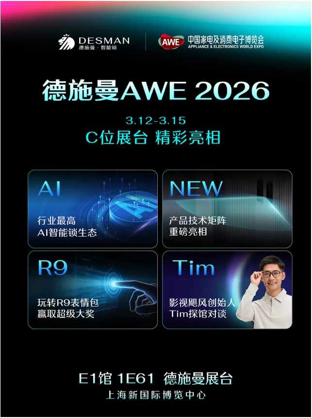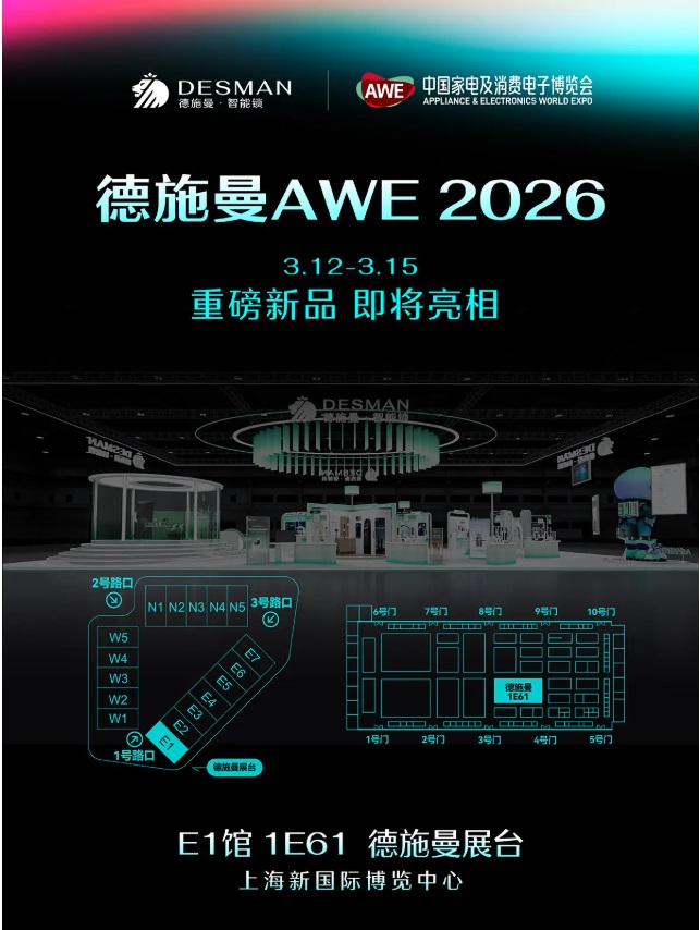 3月11日,德施曼“灵曜未来”新品发布会圆满落幕,揭开了AI智能锁的全新篇章。据悉,3月12日-15日,德施曼将携所有新品与新技术,亮相 2026上海AWE展会E1馆1E61展台,打造沉浸式智能生活体验馆。