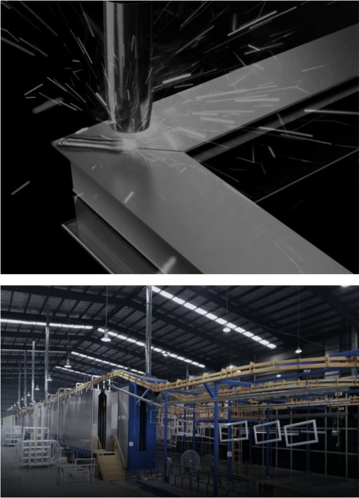 单一工艺的简单叠加,难以从全体系层面实现门窗整体质量与综合性能的实质性提升。良木道无缝整焊 V7 工艺体系,是对整体焊接、整腔填充、止逆压差排水、32K 点机械组角、整体喷涂等多项原创差异化工艺进行系统化整合与深度融合,从而构建起闭环式核心技术体系。该工艺体系涵盖了从型材结构优化、多层密封技术革新、节能工艺升级,到五金配件适配、安装流程标准化的全流程,各技术模块紧密关联、协同作用,使门窗的水密性、气密性、抗风压等硬性性能指标达到最优标准。