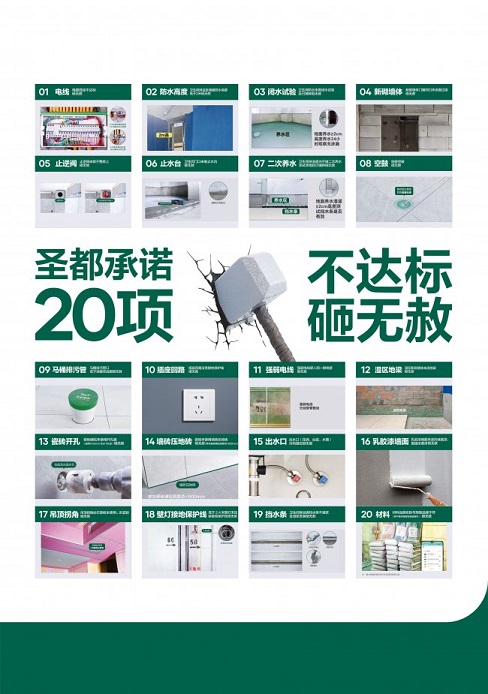 此外,上海圣都更是自加压力,向客户提出“施工20项不达标,砸无赦”口号,旨在将品质精工落实到每一个工地,让客户安心选择圣都。