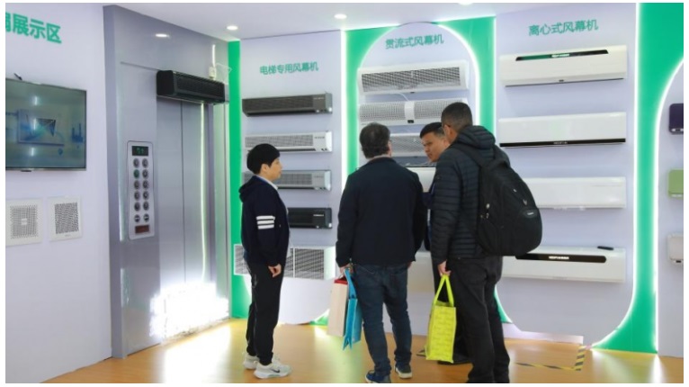 针对商业楼宇,绿岛风展示了其在高能效、高可靠性方面的技术沉淀。其中电梯专用风幕机、出餐窗口风幕机成为焦点。