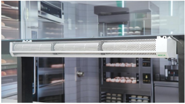 餐饮店出餐口是一个特殊的“半开放”区域,既要频繁地传递食物,又要防止后厨与前厅的空气直接对流。绿岛风的出餐窗口风幕机在传递口建立了一道强劲的“隐形屏障”,阻挡苍蝇、蚊虫、灰尘进入食品区域,同时防止后厨的油烟味飘到前厅,并有效阻隔室内外冷热空气交换,保障食品安全和良好的就餐环境。相较于安装软帘或玻璃门,不影响传菜人员的视线和取餐工作,让传递食物更便捷顺畅。