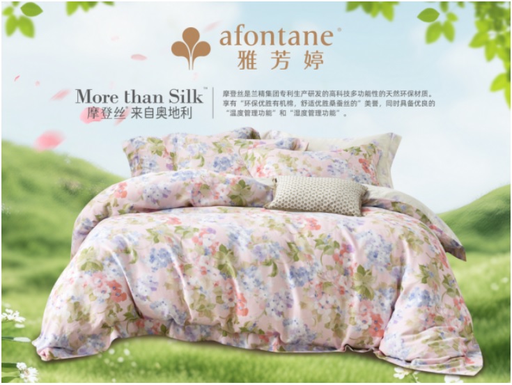 2011年,雅芳婷与兰精公司正式开启战略合作。彼时雅芳婷集团主席许章荣博士便凭借对家纺市场的敏锐洞察,看中兰精公司在纤维素纤维领域的顶尖技术与环保理念,率先引进其新一代纯天然环保树木纤维,重磅推出摩登丝系列床品,开启了双方长达十五年的深度绑定与共赢之路。