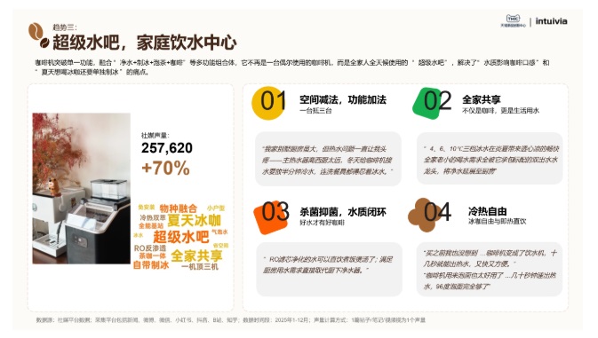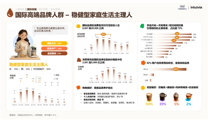 稳健型家庭生活主理人是国际高端品牌的核心用户群体。这个群体的决策逻辑非常清晰:品牌信赖优先于功能参数。她们追求的是家庭生活品质的提升与规律日常的仪式感,因此对制冰、萃茶、冰萃、饮水等创新功能尤为青睐。对她们来说,一台咖啡机不仅是厨房设备,更是家庭生活品质的象征。