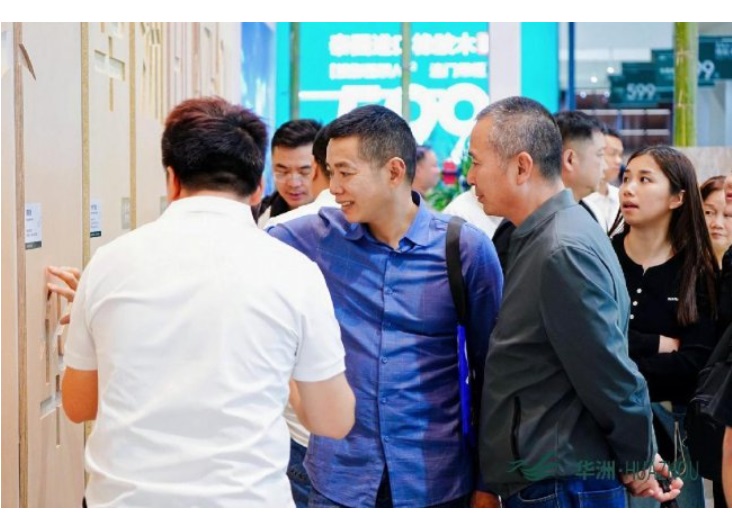 本届展会聚焦轻高定、水漆定制、整装、环保材料等行业核心趋势,众多品牌纷纷亮出创新成果,竞争尤为激烈。而华洲木业的展位自开展以来,便持续保持超高热度,成为全场人气焦点。现场人头攒动、摩肩接踵,咨询人群络绎不绝,洽谈区始终座无虚席,工作人员全程高效忙碌,耐心为每一位来访者讲解产品优势、解答合作疑问,热烈而有序的氛围,直观展现了市场对华洲木业品牌与产品的高度认可,也印证了其在行业内的深厚影响力。